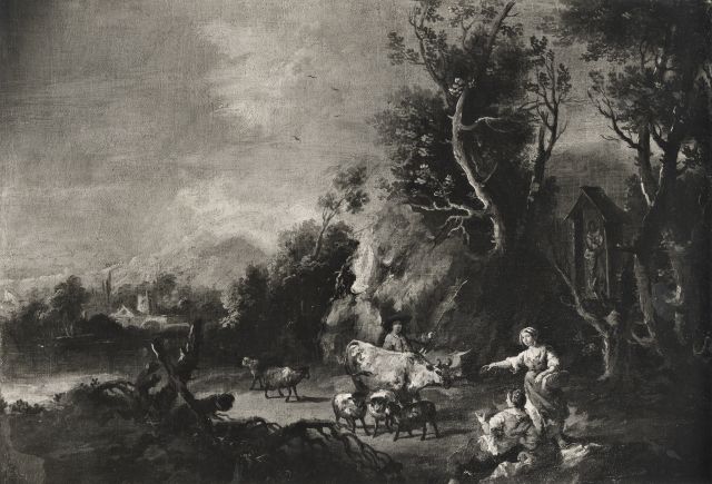 Zais Giuseppe - sec. XVIII - Paesaggio con pastori presso un tabernacolo