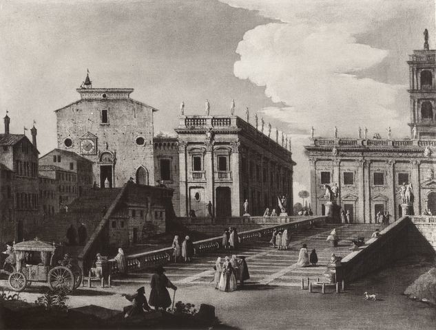 Anonimo — Anonimo - sec. XVIII - Veduta di Roma con la chiesa di S. Maria in Aracoeli e piazza del Campidoglio