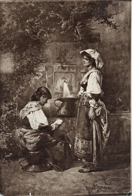 Carlandi Onorato - sec. XIX - Figure femminili in costume ciociaro presso una fonte