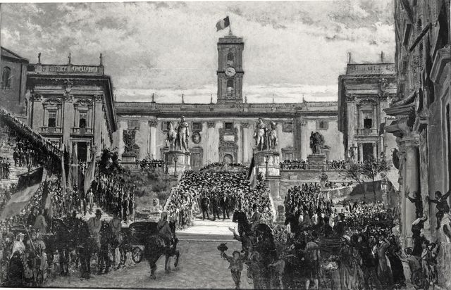 Joris Pio - sec. XIX - Veduta di Roma con la chiesa di S. Maria in Aracoeli e piazza del Campidoglio