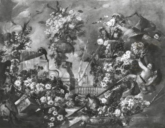 Anonimo falsario sec. XIX/ XX - Natura morta con fiori in un giardino