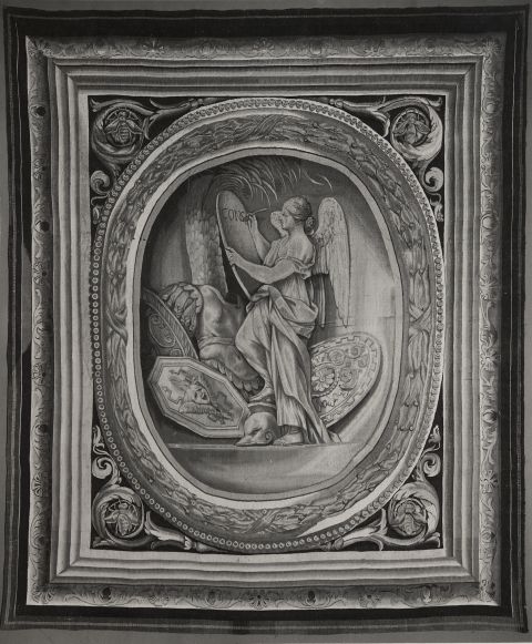 Anonimo — Manifattura Barberini - sec. XVII - Allegoria della Vittoria che scrive il nome di Costantino