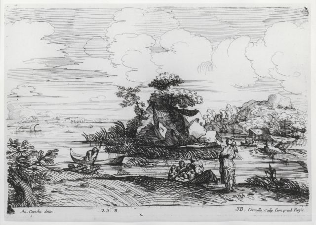 Corneille Jean Baptiste, Paesaggio fluviale con barche e figure