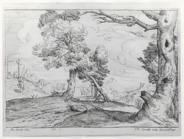 Corneille Jean Baptiste, Paesaggio con crocifissione di Cristo
