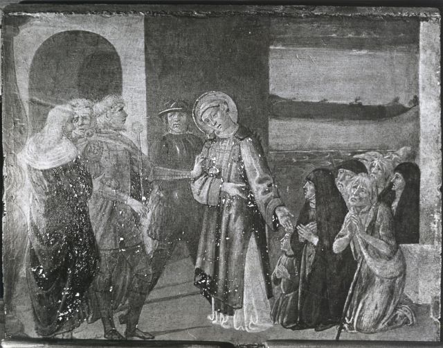 Foto INVN 415939, verso: nota autografa di E. Fahy a penna: "Promised gift to Royalton College / So. Royalton, Vermont / pres - Dr. Anthony Doria - whom I wrote July 79 to link it with predella in the Donazione Salmi at Arezzo".
