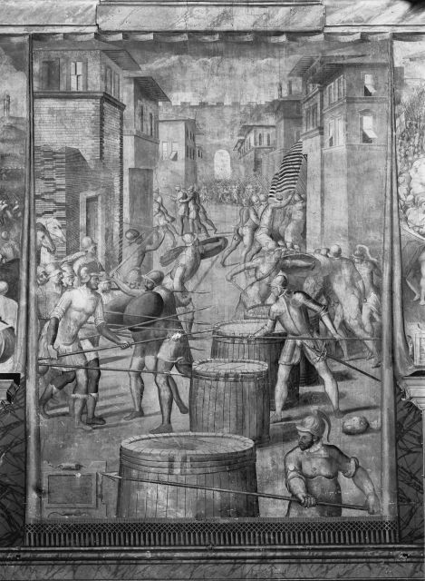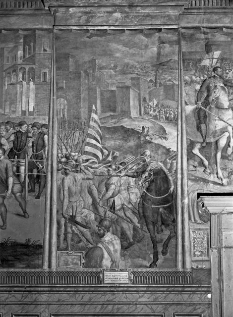 Storie della vita di Ascanio Della Corgna, Ascanio della Corgna all'assedio di Genova nel 1535, Ascanio della Corgna combatte contro gli spagnoli a Casale Monferrato nel 1536, Ascanio della Corgna alla battaglia di Montemurlo, Assedio di Castelnuovo di Cattaro, Assedio di Paliano, Duello di Pitigliano, Ascanio della Corgna reprime la rivolta di Fermo, Ascanio della Corgna al cospetto di papa Giulio III, Ascanio della Corgna in battaglia, Conquista di Montebello, Ascanio della Corgna sfugge a Papirio Capizucchi, Presa di Nettuno e fuga di Ascanio della Corgna a Gaeta, Presa di Ardea e Porcigliano, Ascanio della Corgna riconquista i suoi possedimenti, Ascanio della Corgna alla presenza del re Filippo II di Spagna, Assedio di Malta, Battaglia di Lepanto