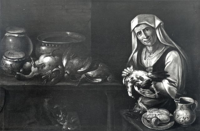 Re Vincenzo, Natura morta con selvaggina, vasellame e figura femminile