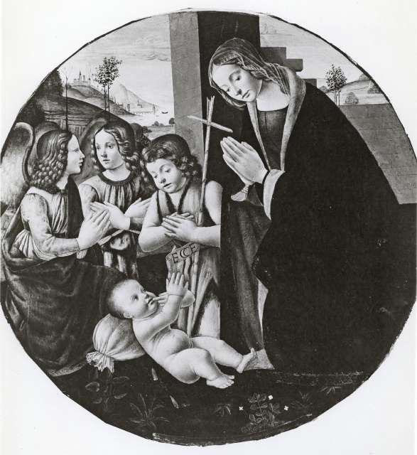 Mainardi Bastiano - sec. XV/ XVI - Madonna in adorazione del Bambino con san Giovannino e angeli
