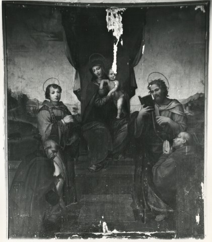 Anonimo Bugiardini Giuliano - sec. XVI - Adorazione del Bambino con san Filippo, san Giovanni Evangelista, san Girolamo e san Giuseppe 1980-1987 gelatina ai sali d'argento/ carta baritata Anonimo — Bugiardini Giuliano - sec. XVI - Madonna con Bambino in trono, santo Stefano, san Bartolomeo, sant'Antonio Abate e san Francesco d'Assisi