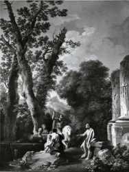 Arte Fotografica — Locatelli Andrea - sec. XVIII - Paesaggio con rovine classiche, fiume e figure