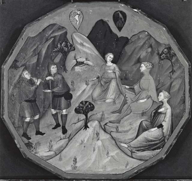 Lorenzo di Niccolò, bottega — Ameto e le ninfe, Contesa tra Alcesto e AcatenLorenzo di Niccolò, bottega