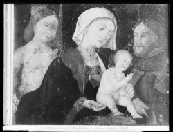 Anonimo veneziano sec. XVI — Madonna con Bambino tra san Sebastiano e san Rocco