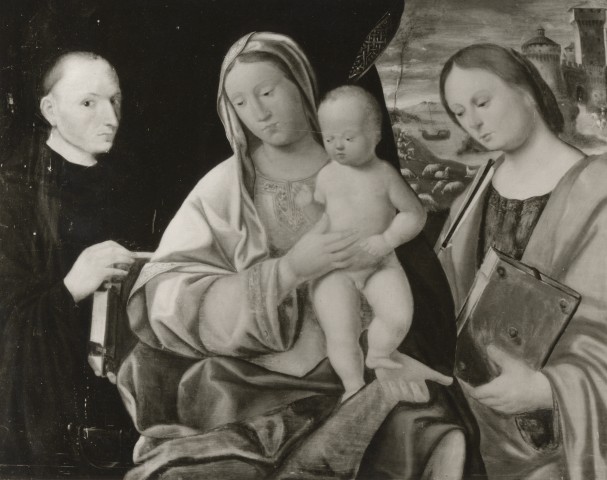 Venetian School, circa 1500. The Virgin and Child with Saints Leonard and Ursula.