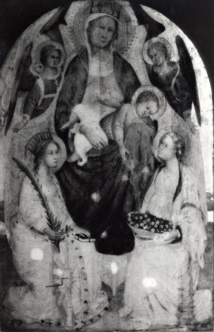 Anonimo Giovanni di Tano Fei (Maestro del 1399) - sec. XIV/ XV - Madonna con Bambino 1890-1920 albumina/ carta Anonimo — Giovanni di Tano Fei (Maestro del 1399) - sec. XIV/ XV - Madonna con Bambino in trono tra santa Caterina d'Alessandria e santa Dorotea