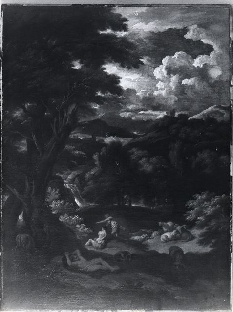 Accademia Carrara — Mulier Pieter il Giovane - sec. XVII/ XVIII - Paesaggio con borgo, fiume, pastore e armentiAccademia Carrara