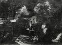 Anonimo — Mulier Pieter il Giovane - sec. XVII/ XVIII - Paesaggio con cascata, pastori e armentiAnonimo