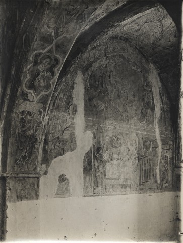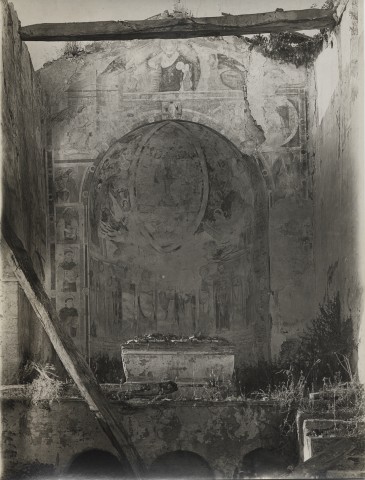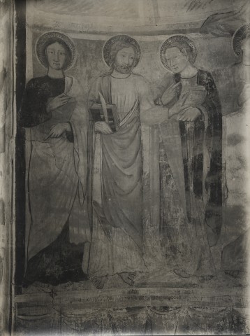 Anonimo Giacomo di Roccantica - sec. XV - Montebuono, chiesa di S. Pietro: affreschi nell'abside 1920-1940 gelatina ai sali d'argento/ carta baritata Anonimo — Anonimo laziale - sec. XV - Montebuono, chiesa di S. Pietro: San Giovanni Battista; Apostolo; Crocifissione