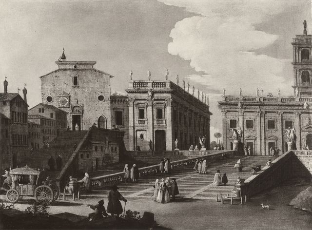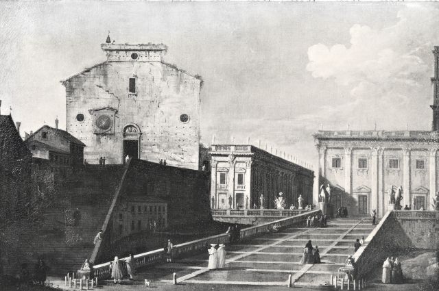 A view in Rome, with the Church of Ara Coeli. School of Canaletto