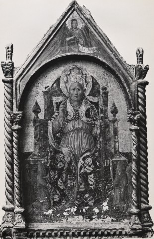 Anonimo — Genga: S. Clemente in cattedra - Stendardo ligneo di Antonio da Fabriano (sec. XV) Anonimo