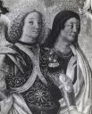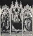 Bob Jones University Museum and Gallery Photographic Studios — Gold Ground Triptych by Francesco Botticini. Centerpiece representing Madonna and Child with wings representing the Saints Michael, Joannes the Evangelist, Blasius, and Petrus. Dated 1469. Bob Jones University Museum and Gallery Photographic Studios