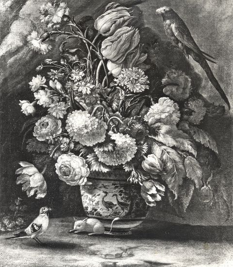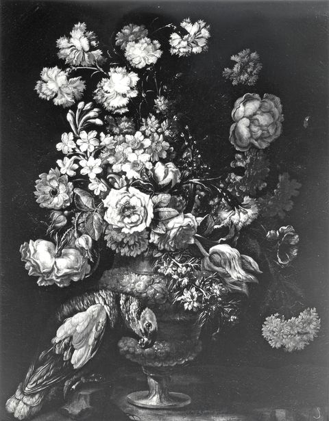 Anonimo — Andrea Scacciati. Vaso di fiori con pappagallo Anonimo