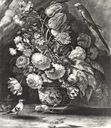 Anonimo — Scacciati Andrea - sec. XVII/ XVIII - Natura morta con vaso scolpito di fiori Anonimo