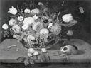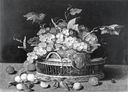 Golendorf, Pierre Anonimo - sec. XVII - Natura morta con cesto e alzata di fiori 1970-1974 gelatina ai sali d'argento/ carta baritata Golendorf, Pierre — Anonimo francese sec. XVII/ XVIII - Natura morta con pesche e prugne