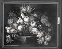 Dorne Martin van - sec. XVIII - Natura morta con vaso di fiori e frutta in un paesaggio