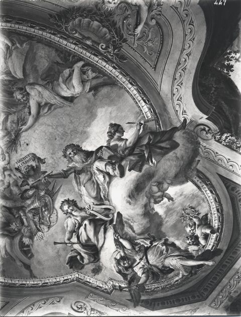 Giani Felice/ Bertolani Gaetano — Quattro virtù cardinali, Trofei militari, Rosoni, Trionfo di Alessandro Magno, Scene di sacrificio, Alessandro Magno riceve l'omaggio della famiglia di Dario