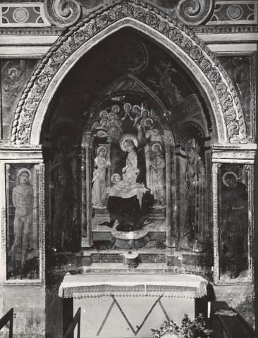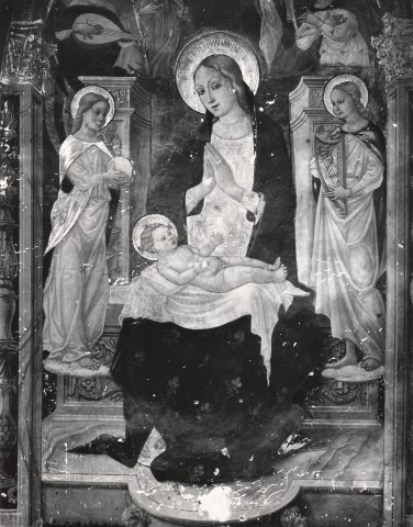 Istituto Centrale per il Catalogo e la Documentazione: Fototeca Nazionale — Sarnano Ch. S. Maria di Piazza. Lorenzo II da S. Severino. Madonna col Bambino e Santi