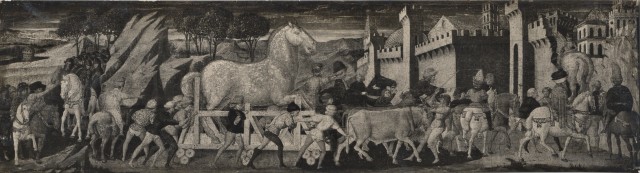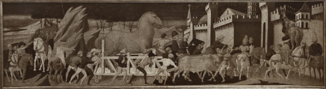 Istituto Centrale per il Catalogo e la Documentazione: Fototeca Nazionale Giovanni di Ser Giovanni (Scheggia) - sec. XV - Cavallo di Troia viene introdotto nella città 1958-1975 gelatina ai sali d'argento/ carta baritata Musée des Arts Décoratifs — Le cheval de Troie. Ecole de Paolo Uccello