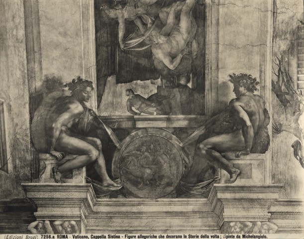 Brogi — Roma - Vaticano, Cappella Sistina - Figure allegoriche che decorano le Storie della volta; dipinte da Michelangiolo.Brogi