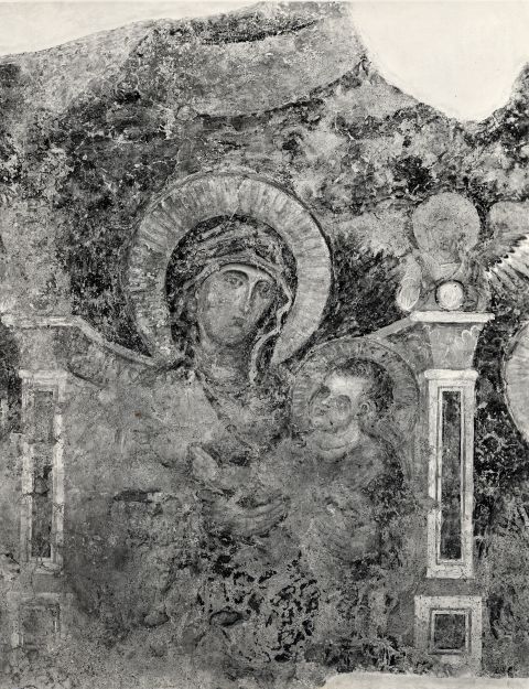 Istituto Centrale per il Catalogo e la Documentazione: Fototeca Nazionale — Roma - Ch. dei SS. Cosma e Damiano, affr. sec. XIV. Mad. col Bambino in trono fra i S.S. Cosma e Damiano Istituto Centrale per il Catalogo e la Documentazione: Fototeca Nazionale
