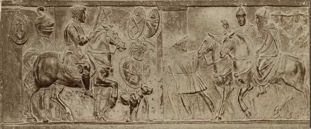Anonimo Averulino Antonio - sec. XV - Portale della basilica di S. Pietro, battente sinistro: Incontro di Antonio Rido con l'imperatore Sigismondo e papa Eugenio IV 1890-1908 aristotipo Anonimo — Averulino Antonio - sec. XV - Portale della basilica di S. Pietro, battente sinistro: Incoronazione dell'Imperatore Sigismondo