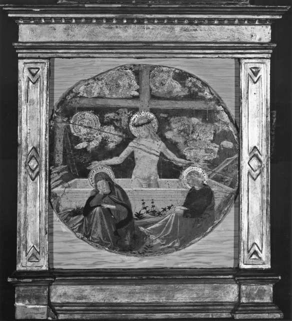 Malvito Giovan Tommaso Cristo in pietà con la Madonna e san Giovanni Evangelista 1470-1480 Chiesa di S. Giovanni a Carbonara, Napoli Francesco di Stefano (Pesellino), bottega — Cristo in pietà con la Madonna e san Giovanni Evangelista