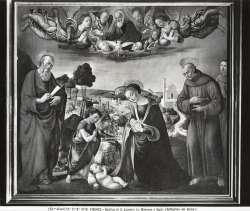 Alinari, Fratelli — Firenze - Basilica di S. Lorenzo. La Madonna e Santi. (Raffaellino del Garbo.)
