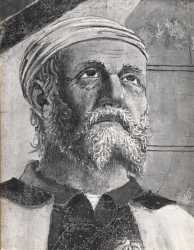 Gabinetto Fotografico della Soprintendenza Speciale per il Patrimonio Storico, Artistico ed Etnoantropologico e per il Polo Museale della città di Firenze — Pietro di Benedetto dei Franceschi (Piero della Francesca) - sec. XV - Volto del vecchio in adorazione della vera croce