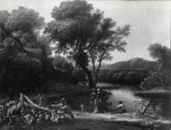 Agence photographique de la Réunion des Musées Nationaux — Cerquozzi Michelangelo; Onofri Crescenzio - sec. XVII - Paesaggio con cacciatori e viandanti