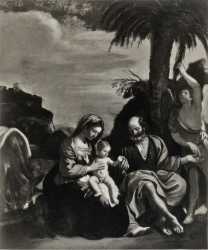 Anonimo — Barbieri Giovan Francesco - bottega - sec. XVII - Riposo nella fuga in Egitto