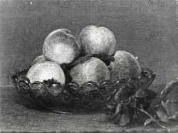 A. C. Cooper — Fantin-Latour Henri - sec. XIX/ XX - Natura morta con fruttiera di pesche e fiore