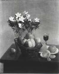 A. C. Cooper — Fantin-Latour Henri - sec. XIX - Natura morta con vaso di fiori, cesto di mele, arance e bicchiere di vino