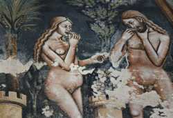 Anonimo — Galatina, Basilica di S. Caterina d'Alessandria, navata centrale, seconda campata, parete destra: Adamo ed Eva mangiano i frutti del Paradiso terrestre