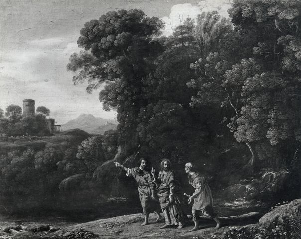 Sotheby's — Gellèe Claude (Claude Lorrain) - sec. XVII - Paesaggio con incontro di Cristo e i discepoli sulla via di Emmaus
