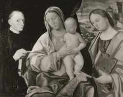Anonimo — Venetian School, circa 1500. The Virgin and Child with Saints Leonard and Ursula.