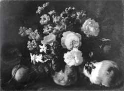 Anonimo — Tamm Franz Werner von - sec. XVII/ XVIII - Natura morta con fiori, frutta e porcellino d'India