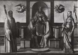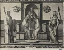 Alinari, Fratelli — Bergamo - Galleria Carrara. Collezione Lochis. L'Incoronazione della Vergine, ai lati due santi. (Lazzaro Sebastiani)