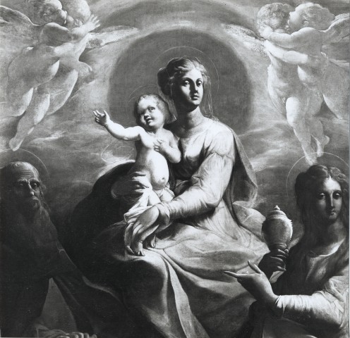 Anonimo — Celio Gaspare - sec. XVI/ XVII - Madonna con Bambino tra sant'Antonio Abate, santa Maria Maddalena e angeli