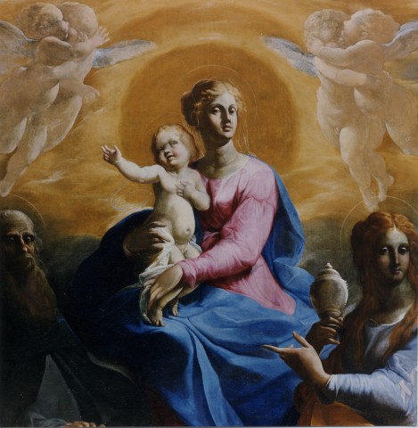 Anonimo — Celio Gaspare - sec. XVI/ XVII - Madonna con Bambino tra sant'Antonio Abate, santa Maria Maddalena e angeli: particolare