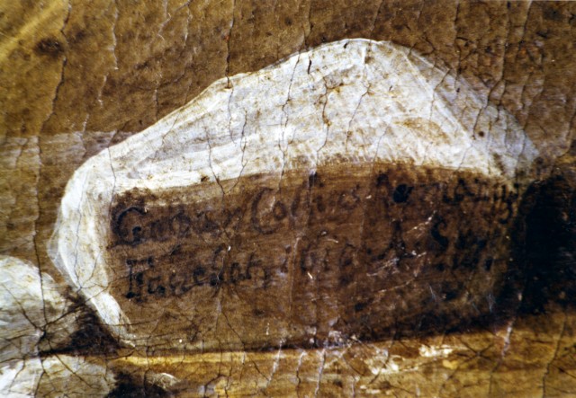 Anonimo — Celio Gaspare - sec. XVII - Scena di battaglia: sasso con data e firma dell'artista