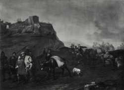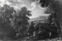 Agence photographique de la Réunion des Musées Nationaux — Cerquozzi Michelangelo; Onofri Crescenzio - sec. XVII - Paesaggio con cacciatori e viandanti